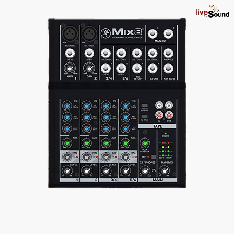 Mackie Mix8 เป็นมิกเซอร์ขนาดเล็กแต่มีประสิทธิภาพสูง ออกแบบมาเพื่อให้คุณควบคุมเสียงได้อย่างเต็มที่ แม้จะมีขนาดกะทัดรัด แต่มิกเซอร์ 8 ช่องนี้มาพร้อมคุณสมบัติระดับพรีเมียมมากมาย หมาะสำหรับผู้สร้างสรรค์ผลงานที่ต้องการควบคุมเสียงได้มากขึ้น ไม่ว่าจะเป็นนักดนตรี ผู้ผลิตคอนเทนต์ หรือผู้ที่ต้องการคุณภาพเสียงระดับมืออาชีพในขนาดที่กะทัดรัด ด้วยคุณสมบัติที่ครบครัน Mix8 จึงเป็นอุปกรณ์อเนกประสงค์ที่สามารถรองรับการใช้งานได้หลากหลายรูปแบบ